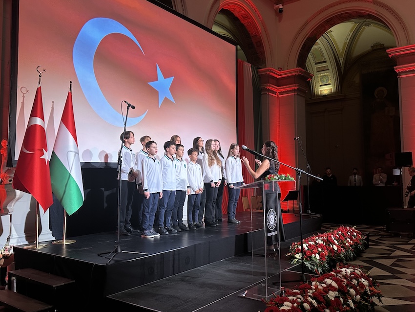The celebration began with the national anthems of Türkiye and Hungary, performed by the students of the Budapest Maarif International School.