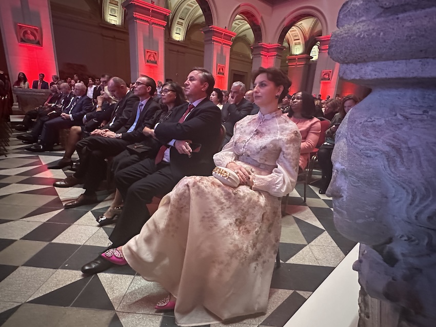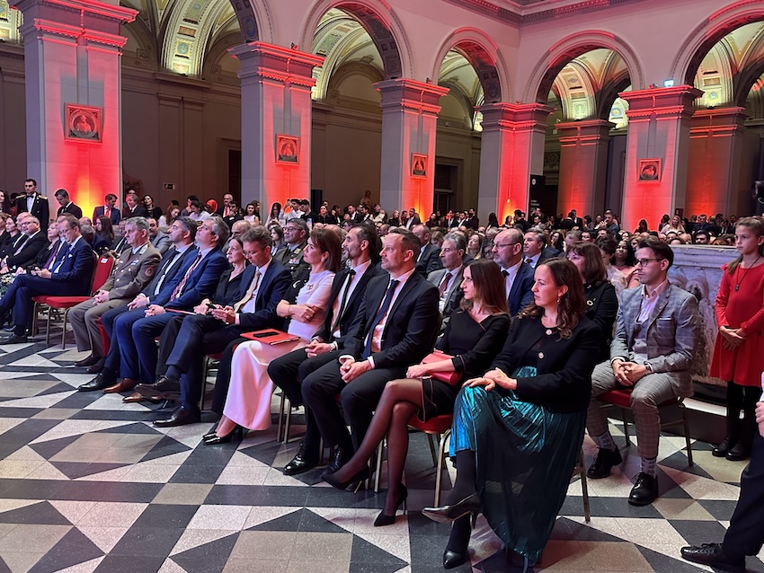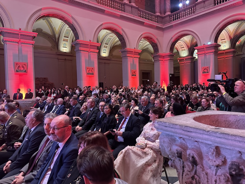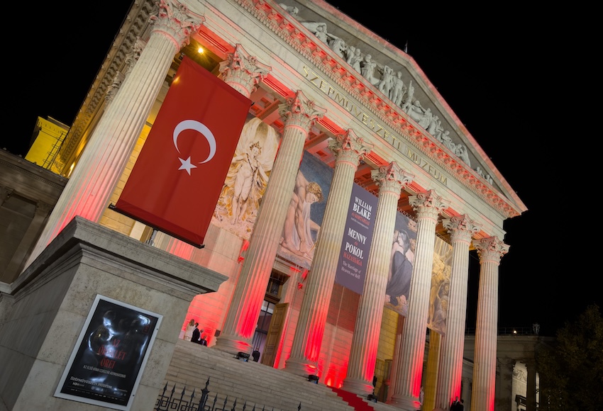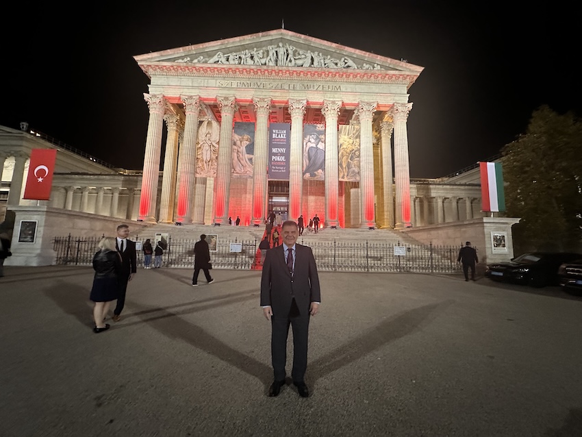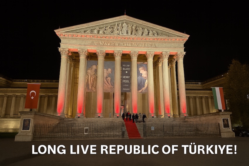 On the occasion of the 102nd Anniversary of the Proclamation of the Republic of Türkiye, Her Excellency Ms. Gülşen Karanis Ekşioğlu, Ambassador of the Republic of Türkiye to Hungary, and her spouse, Mr. Ekrem Ekşioğlu, hosted a festive reception at the Museum of Fine Arts in Budapest. The iconic building, one of the city’s most esteemed cultural institutions, was illuminated in the vibrant red of the Turkish flag – an eye-catching tribute to the historic celebration.