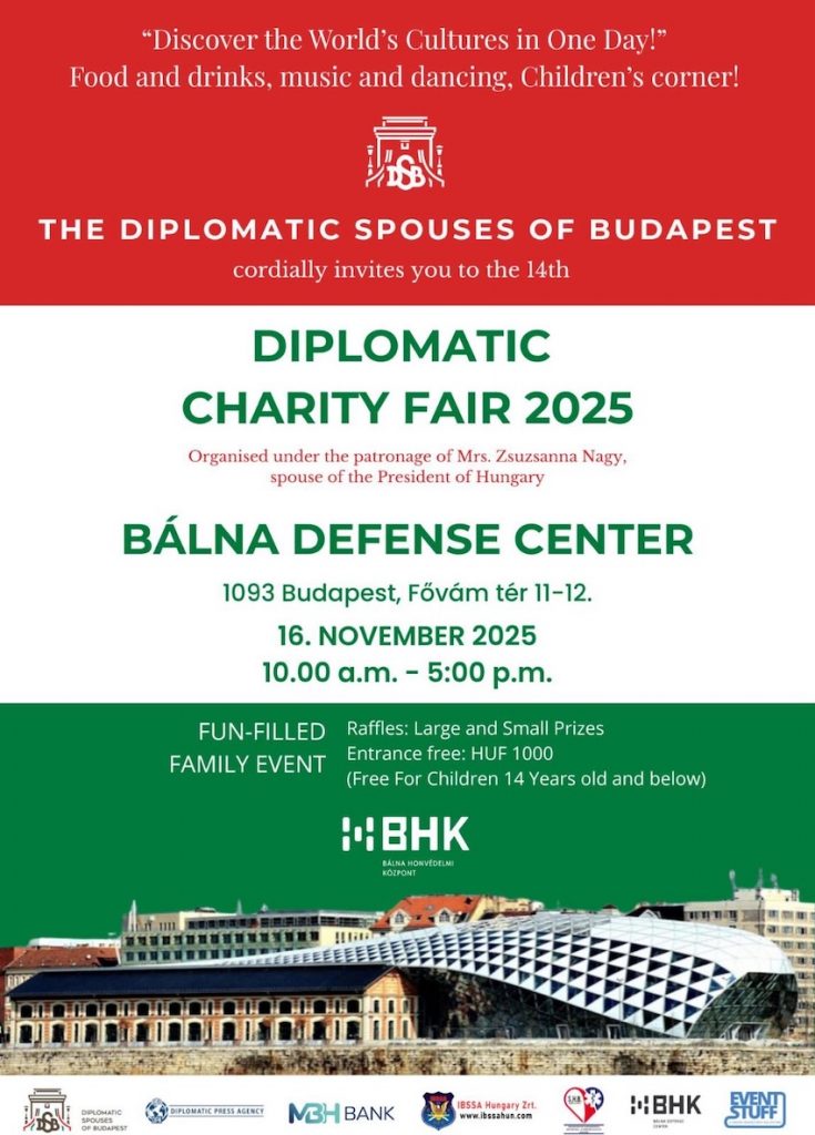 As a complimentary contribution to the Diplomatic Charity Fair 2025, organised by the DSB, IBSSA Hungary Zrt. kindly offered security staff and systems, technical and audio-visual equipment, venue arrangements, and photo and video services, and the Diplomatic Press Agency provided media support and assistance in the entire organisational process of the event.