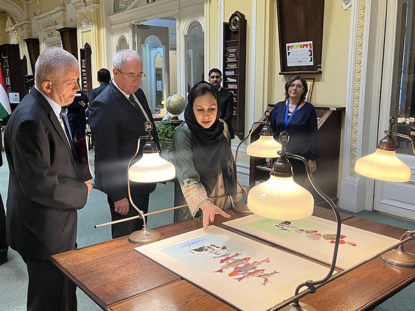 “It is a great pleasure and a distinct honour to welcome you all to the opening of the exhibition ‘Allure of the East: Interpreting Tradition.’ The last time I had the privilege of meeting His Excellency Mr. Asif Hussain Memon was in July 2024, during his visit to the National Széchényi Library. On that memorable occasion, we exchanged ideas on potential avenues for cultural collaboration between the National Library of Pakistan, the Embassy of Pakistan, and our own institution.