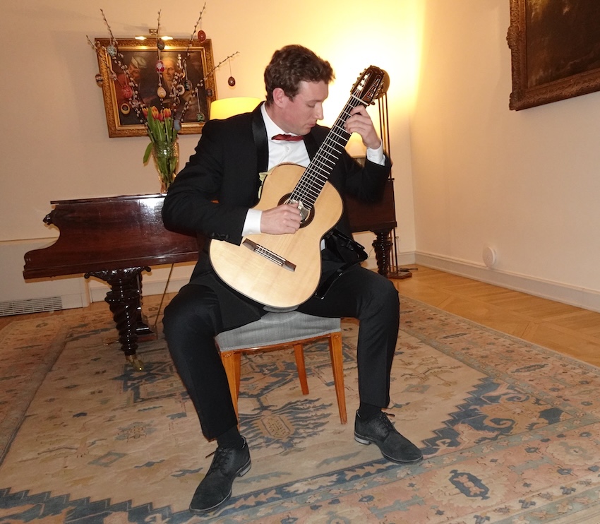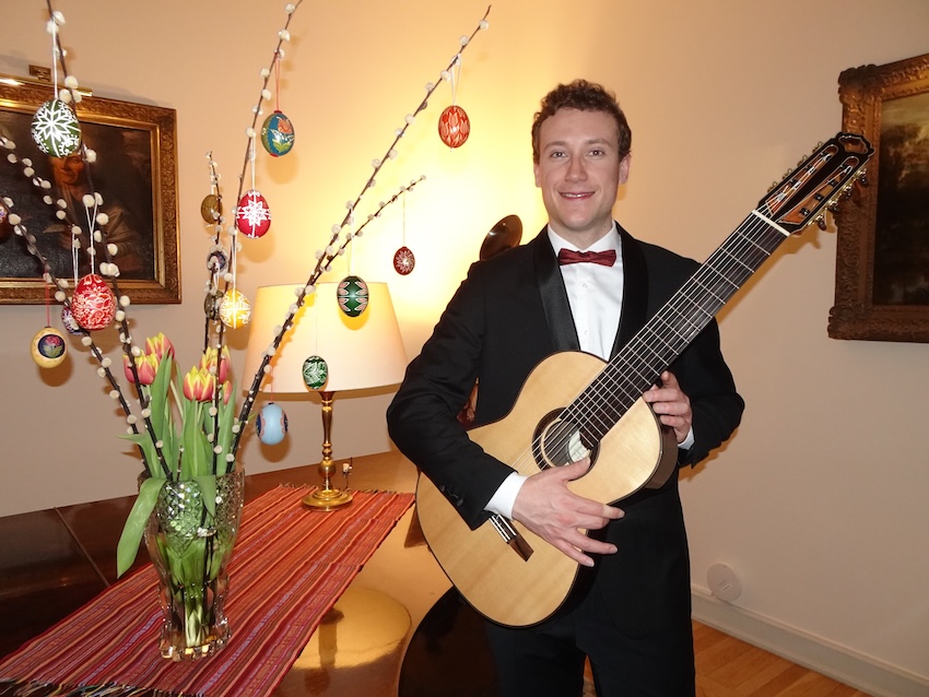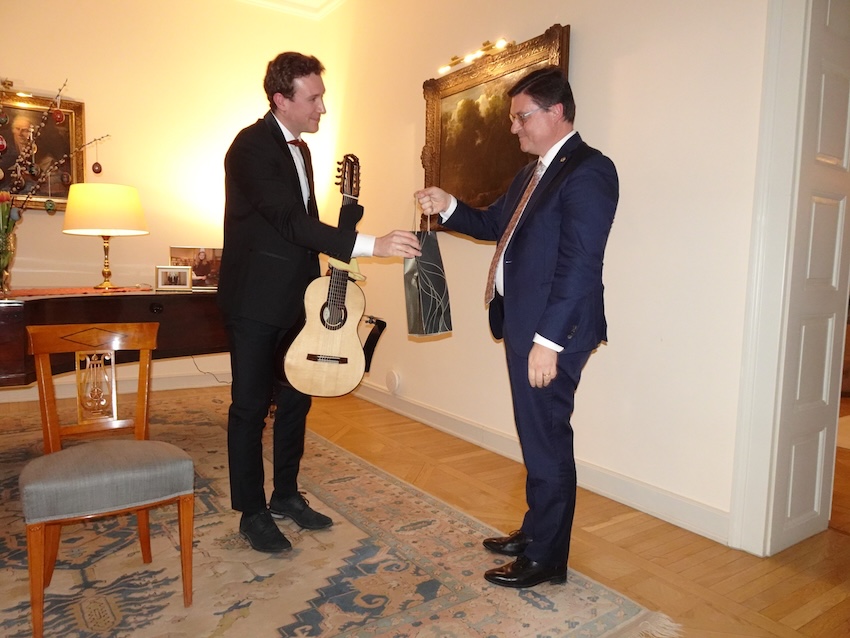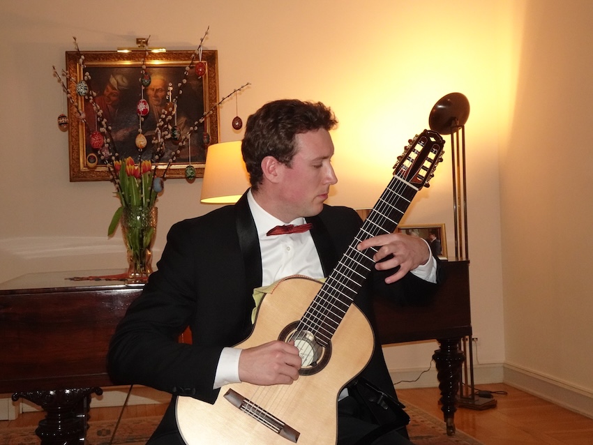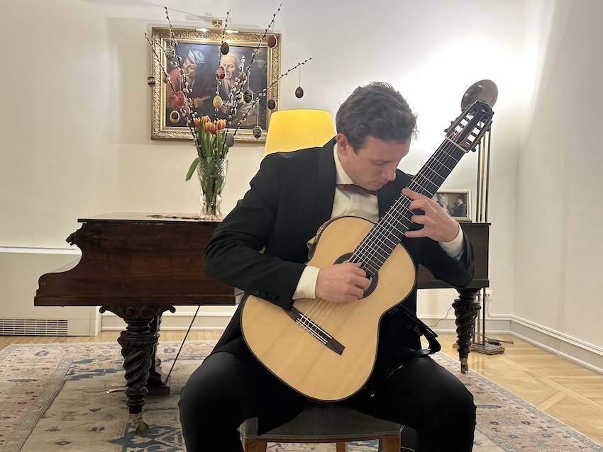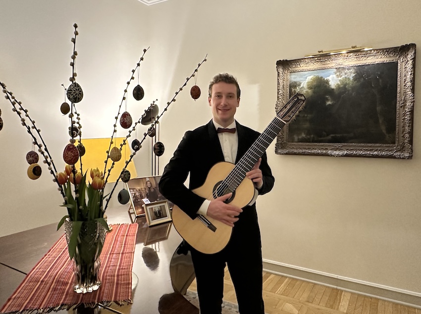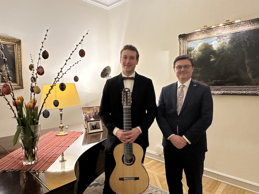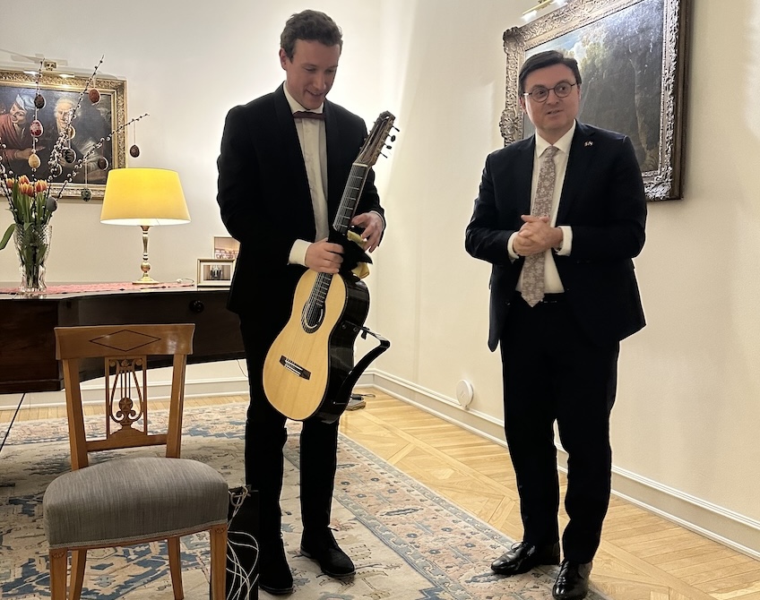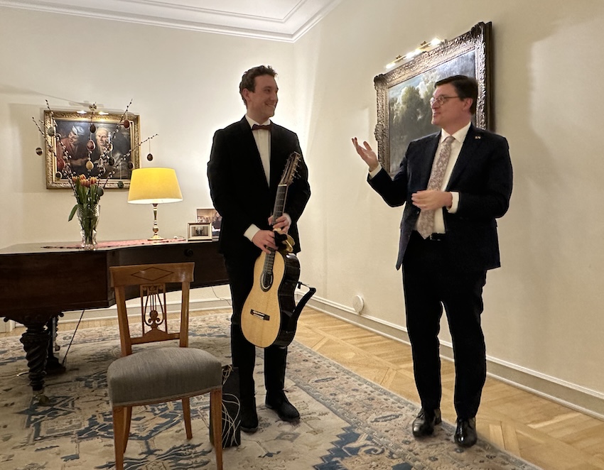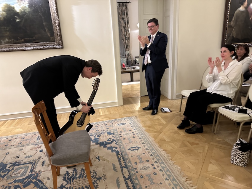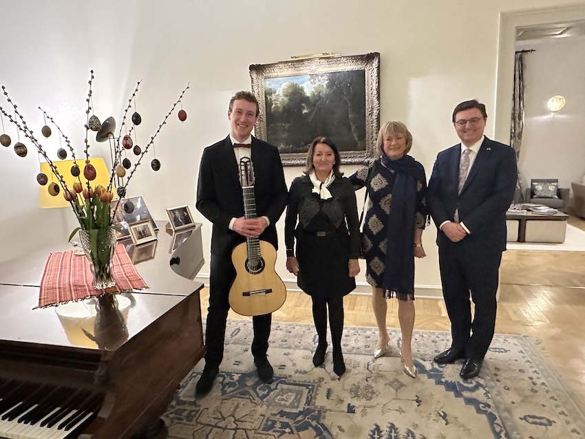 On the evening of 2 April 2026, in the refined setting of the Ambassadorial Residence in Budapest, His Excellency Mr. Jeroen Vergeylen, Ambassador of the Kingdom of Belgium to Hungary, hosted a special classical guitar concert in Easter mood by the young and highly accomplished Belgian guitarist Nathan Andrien. The event formed part of the Embassy’s cultural diplomacy efforts and brought together members of the diplomatic corps, Hungarian and Belgian guests, and representatives of the cultural sphere.
