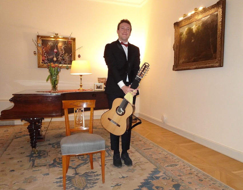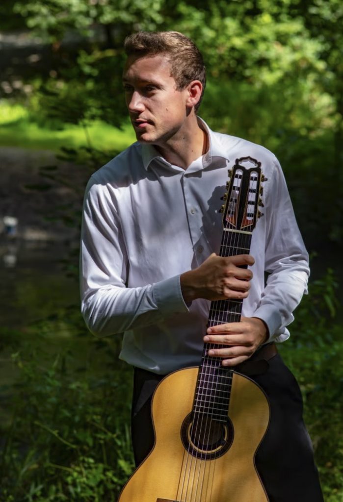 His artistic credo reflects a coherent concept: “As a young artist, I am dedicated to broaden the audience of classical guitar. My performances allow people to discover hidden gems of the guitar repertoire, while also listening to well-known pieces and/or composers adapted to the light and colourful touch of the classical guitar. Through this unique experience of music that will take you in and outside of your comfort zone, I want to share with you my vision of music. I value diversity and discovery, but most importantly beauty, and I ensure every concert offers an authentic and sensitive experience.”