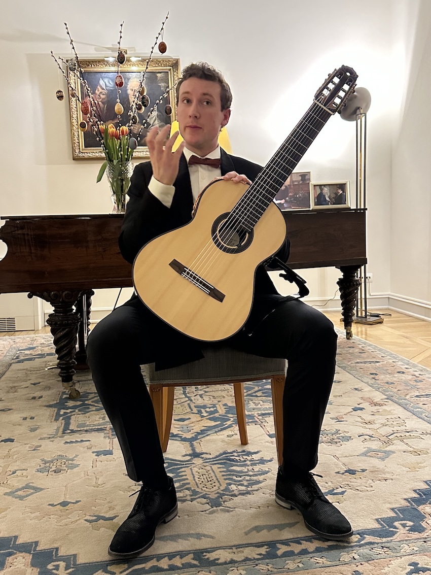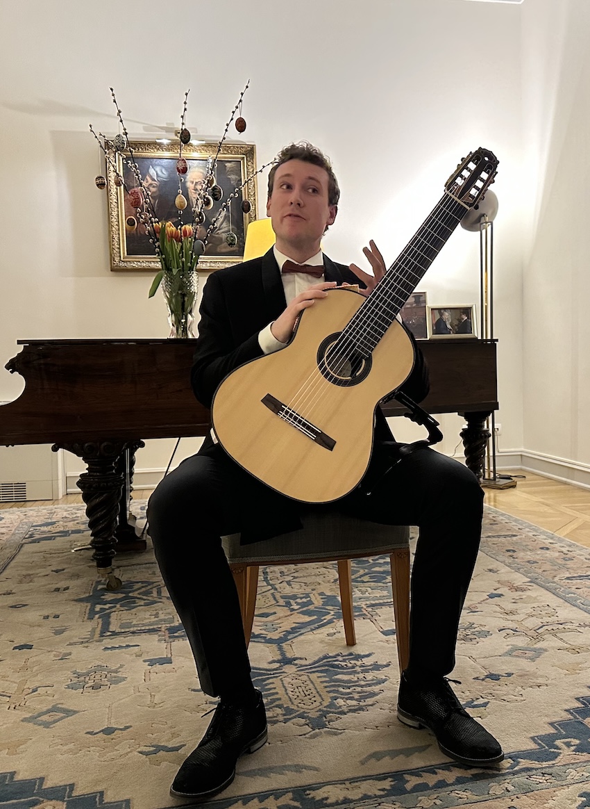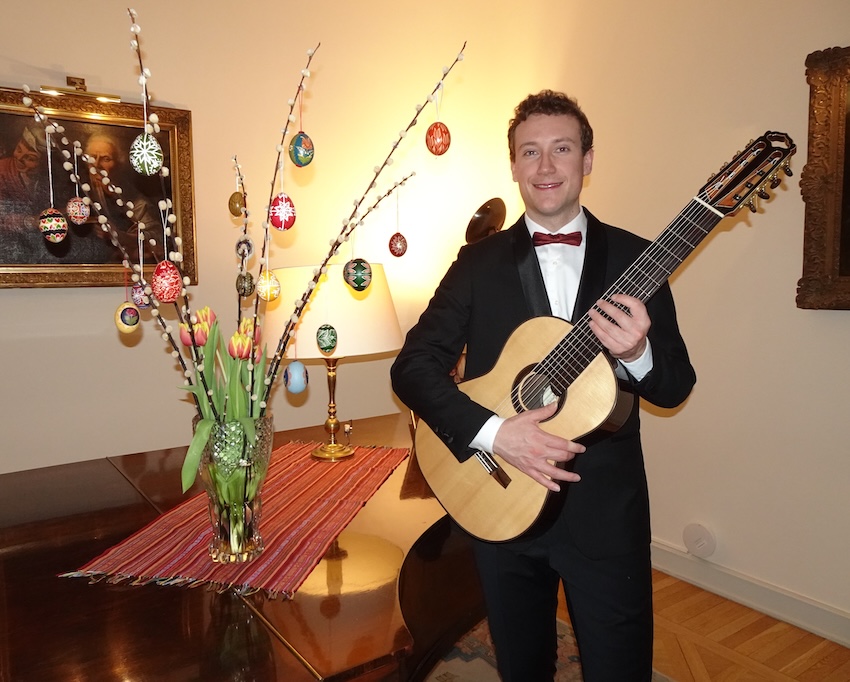 On the evening of 2 April 2026, in the refined setting of the Ambassadorial Residence in Budapest, His Excellency Mr. Jeroen Vergeylen, Ambassador of the Kingdom of Belgium to Hungary, hosted a special classical guitar concert in Easter mood by the young and highly accomplished Belgian guitarist Nathan Andrien. The event formed part of the Embassy’s cultural diplomacy efforts and brought together members of the diplomatic corps, Hungarian and Belgian guests, and representatives of the cultural sphere.
