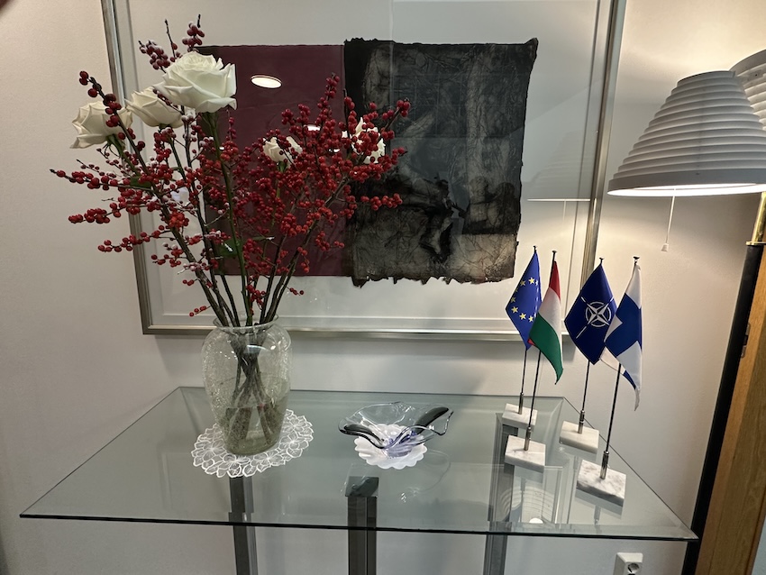 I also wish to recognize the work of the Finnish Institute in Hungary, FinnAgora, and the Finnish Chamber of Commerce in this regard. And finally, my heartfelt thanks and gratitude go to the amazing and hardworking staff of the Embassy, namely Kaisa, Heta, Maiju, Szilvi, Virág, Dani, Dóra, Bori, Anna, Miki, Zoli, Kati, Zsolt, Ani and Eva, as well as to my dear wife Katriina.