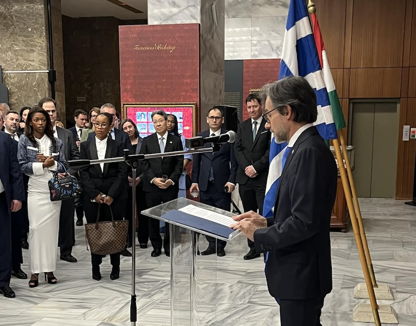 It continued with an address by Ambassador Apostolakis, who first welcomed the guests in Hungarian before delivering his speech: