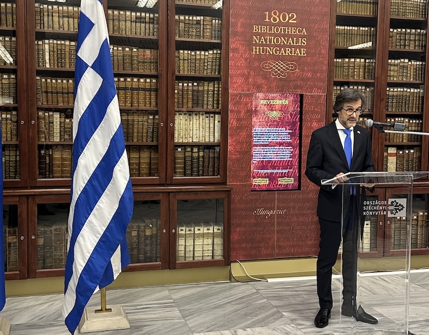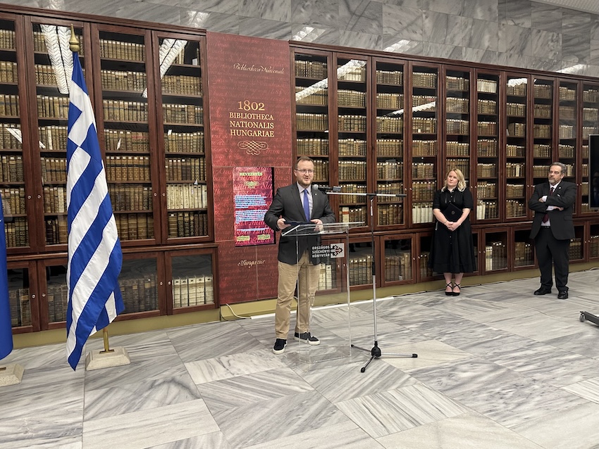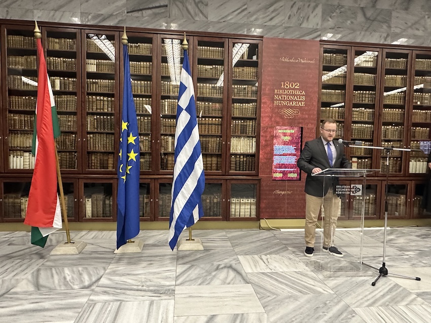 The programme continued with welcome remarks by the Director General of the National Széchényi Library, Mr. Dávid Rózsa, who highlighted the excellent cooperation with the Embassy of Greece in Budapest and emphasized the longstanding cultural ties between Greece and Hungary. He noted the important role of cultural institutions in strengthening dialogue and fostering mutual understanding between the two countries.