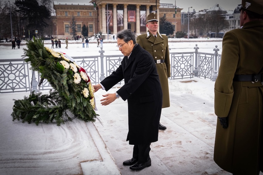 In line with diplomatic tradition, Ambassador Kimura then laid a wreath at the Tomb of the Unknown Soldier in Heroes’ Square to commemorate the nation’s sacrifices and pay tribute to Hungary’s heritage.