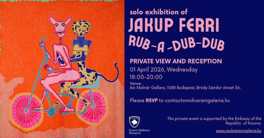 As part of its cultural activities, the Embassy of the Republic of Kosovo in Hungary, in cooperation with the Ani Molnár Gallery in Budapest, organised the solo exhibition RUB-A-DUB-DUB by contemporary Kosovar artist Jakup Ferri, who was present at the event and enjoyed engaging with the local audience.