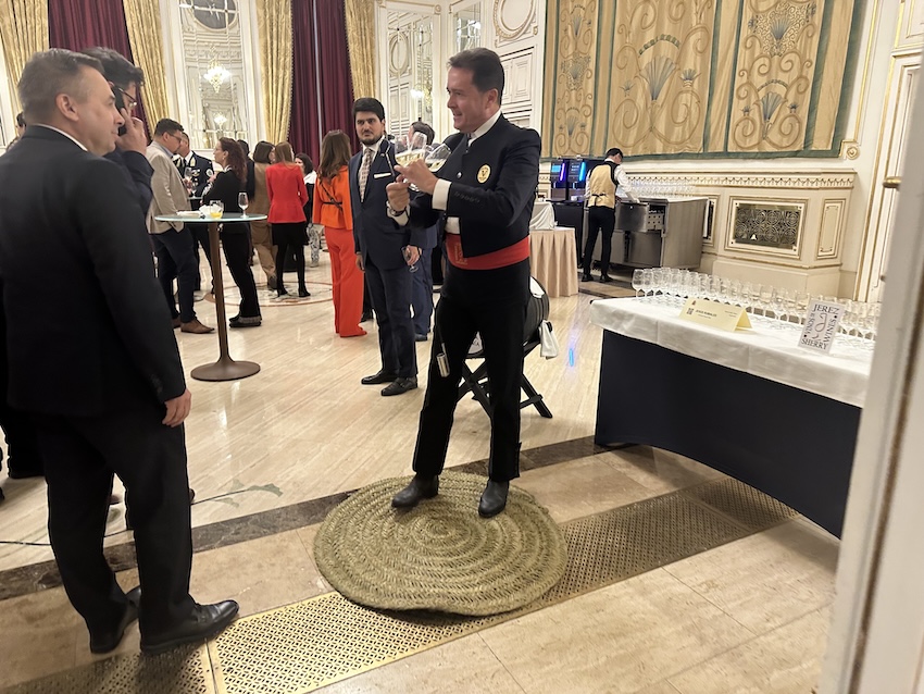 The guests were invited to a reception where they were captivated by the Venenciador’s graceful art of serving sherry, (vino de Jerez) a world-renowned fortified wine produced exclusively in southern Spain, – an elegant and spectacular gesture rarely seen outside of Spain, even by those who appreciate this emblematic wine.